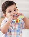 Mordedor y sonajero 2 en 1 con forma de pájaro. Fabricado en silicona suave con texturas para aliviar las encías. Incluye cuentas sonoras y diseño fácil de agarrar. A partir de los 3 meses. Libre de BPA.