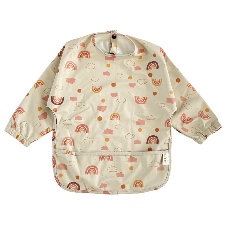 Babero impermeable con mangas largas, ideal para proteger al bebé durante las comidas o actividades con pintura o juegos.