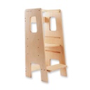 La Torre de Aprendizaje es una estructura de madera con escalera y baranda que permite que los niños suban y bajen por sí mismos, quedando a la misma altura que los adultos de manera segura, listos para compartir y participar de las actividades cotidianas de la familia.